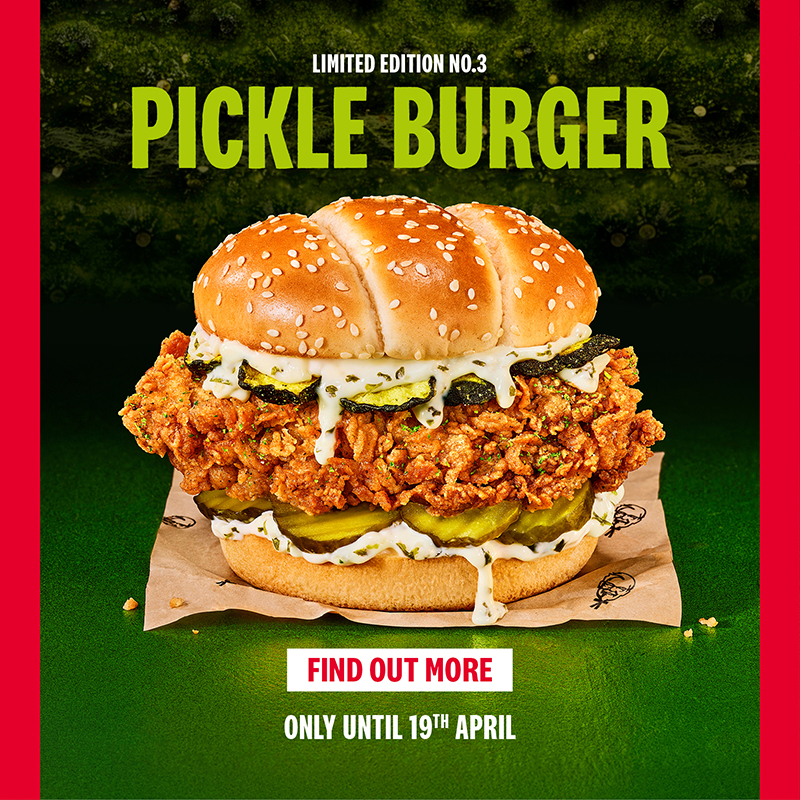 The Pickle range is here for a limited time only. Grab it before it vanishes on April 19th. Available for collection and delivery from your local KFC. Order for pickup right here on the KFC website, or find your nearest KFC or Drive-Thru to snap it up before it goes.
